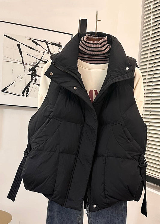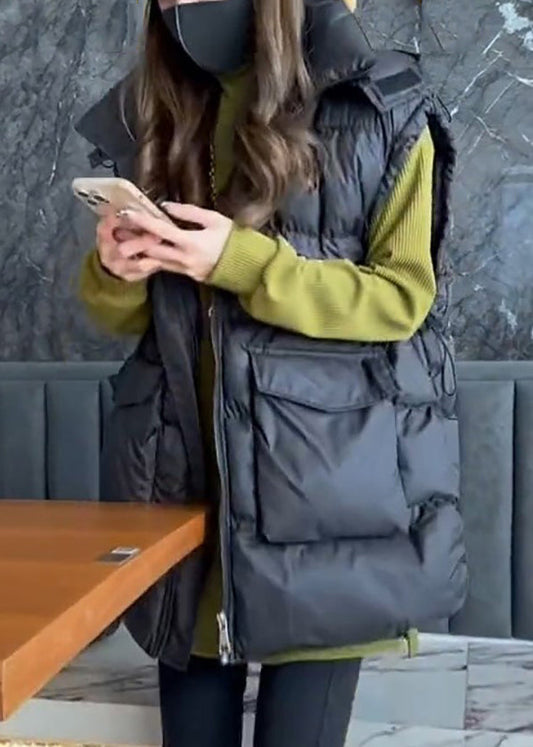 Black Pockets Cotton Filled Waistcoat Zip Up Sleeveless YW013