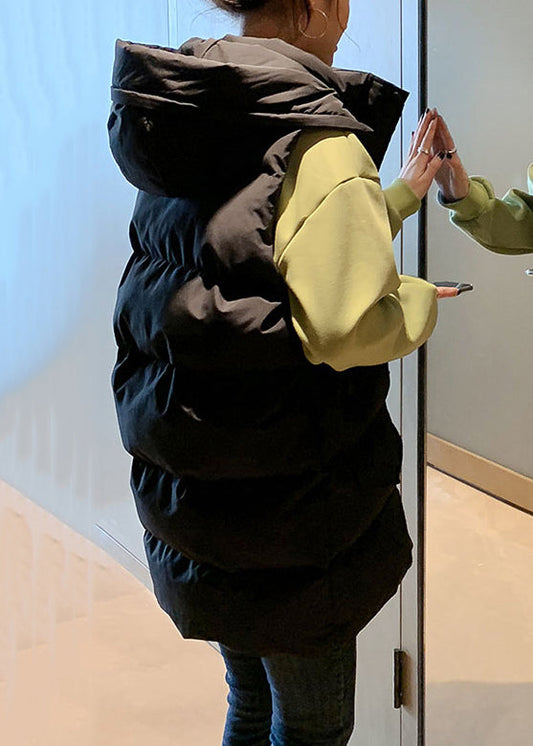 New Beige Hooded Pockets Cotton Filled Waistcoat Sleeveless YW016