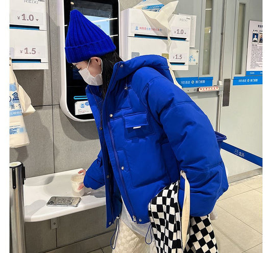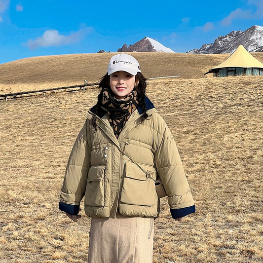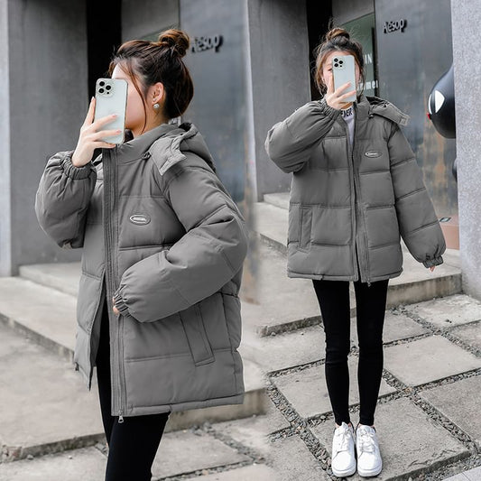 Lettering Applique Hooded Midi Zip Puffer Coat