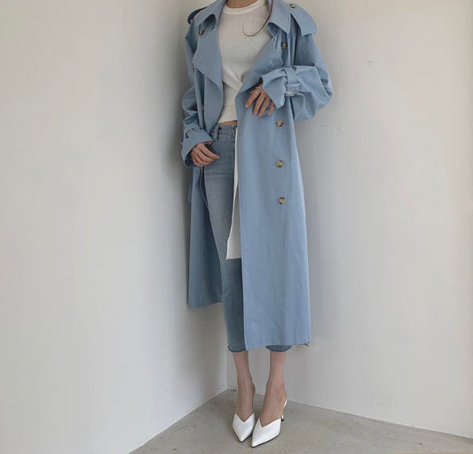 Collared Plain Back Slit Midi Double Breasted Trench Coat