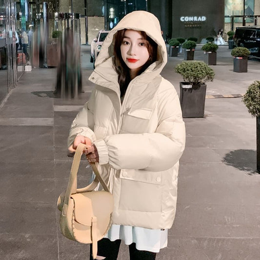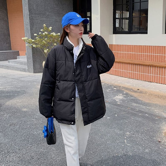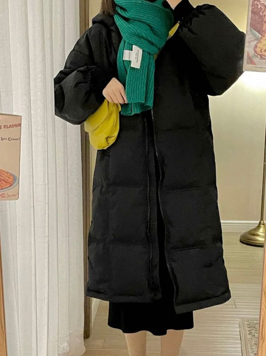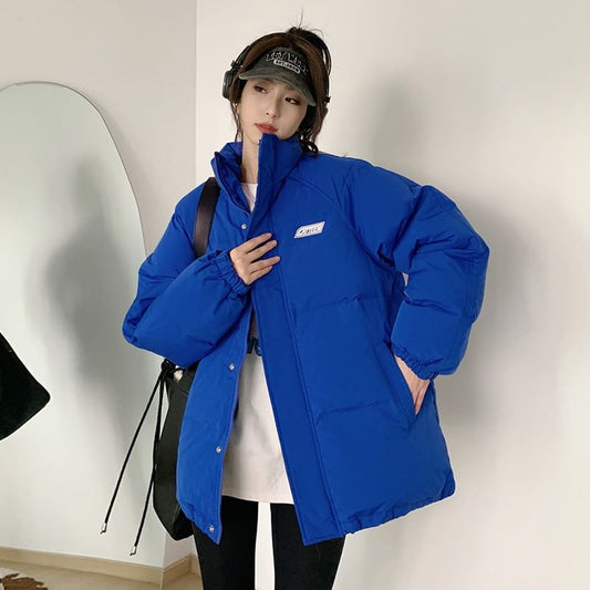 Stand Collar Lettering Hood Midi Zip Puffer Coat