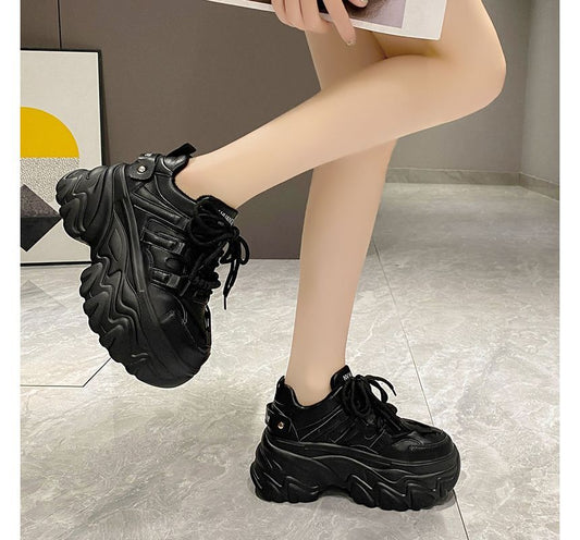 Plain Faux Sneakers Lettering Fleece-Lined Platform Leather Print