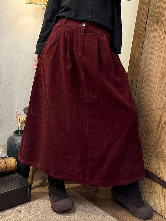Women Autumn Vintage Solid A-Shape Corduroy Skirt BA1041