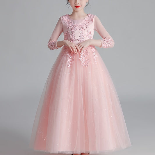 Sequin Flower Dress Girl Long Girls' Kids Party