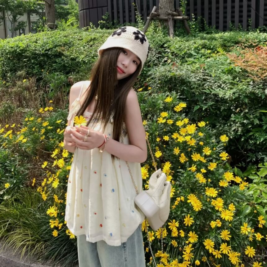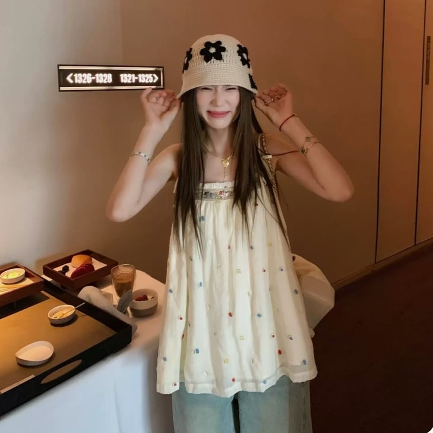 Accent Flowy Top Camisole Trim Frill Embroidered Bow