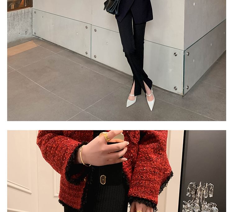 Stiletto Pointed Toe Rhinestone Accent Patent Leather Slingback Sandals