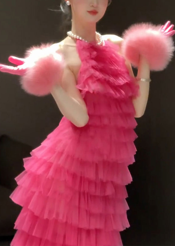 Beautiful Dresses Rose Solid Sleeveless Pleated Backless