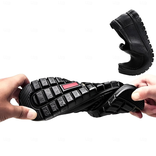 Men's Black Premium Cowhide Slip-On Loafers with Decorative
