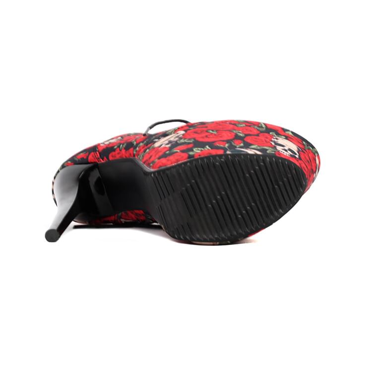 Floral Heel Ankle Stiletto Lace-Up Boots Platform