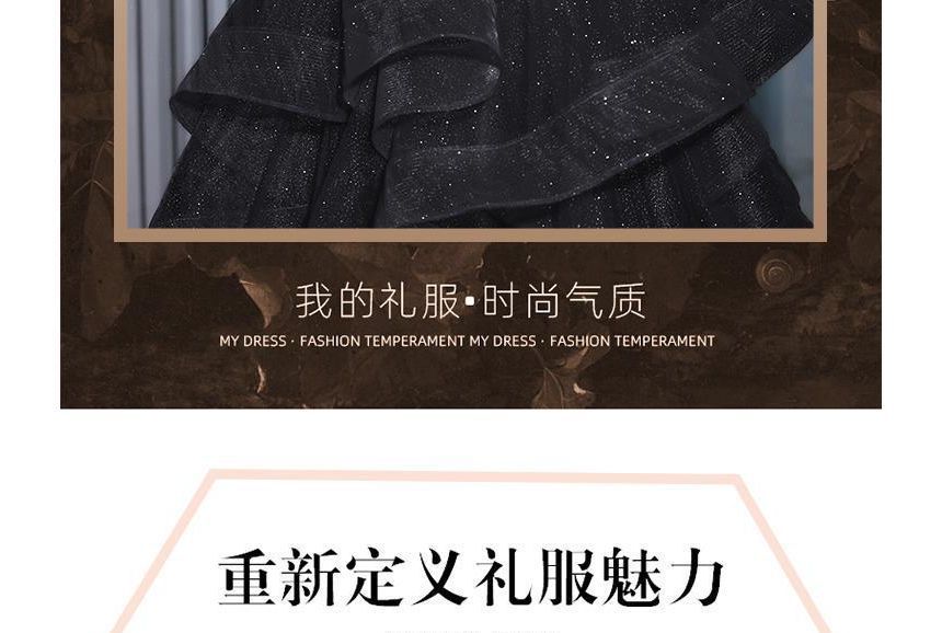 Gown Off Panel Short-Sleeve A-Line Shoulder Glitter Rhinestone Ruffle Velvet Evening
