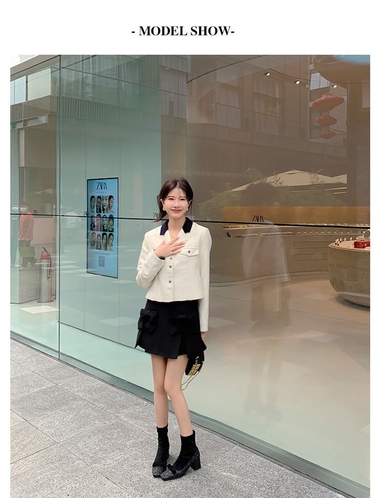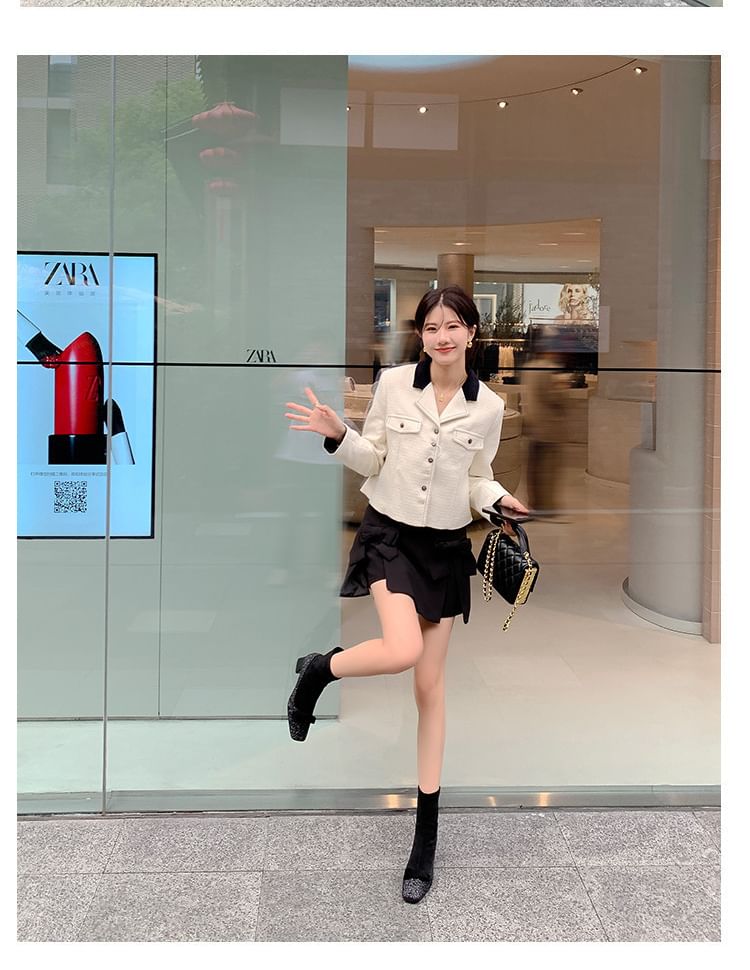 Heel Bow Short Boots Block Glitter Square Sock Toe