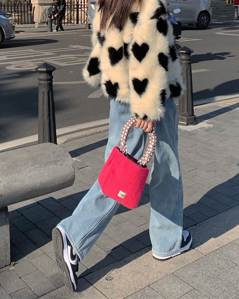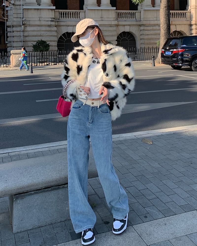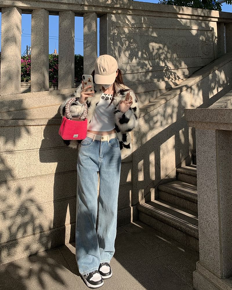 High Waist Two Tone Washed Wide Leg Jeans