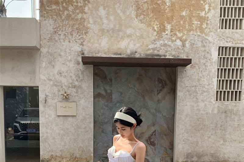 / Maxi Waist Cutout Skirt Mock Two-Piece Neckline A-Line Striped Camisole High Top Sweetheart Crop
