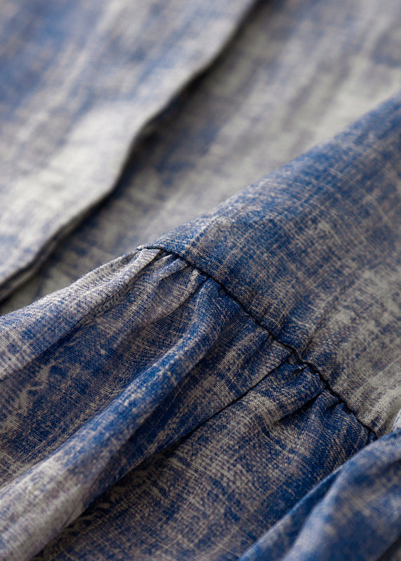 Plus Size Blue O Neck Tie Dye Patchwork Cotton Shirts Spring TI030