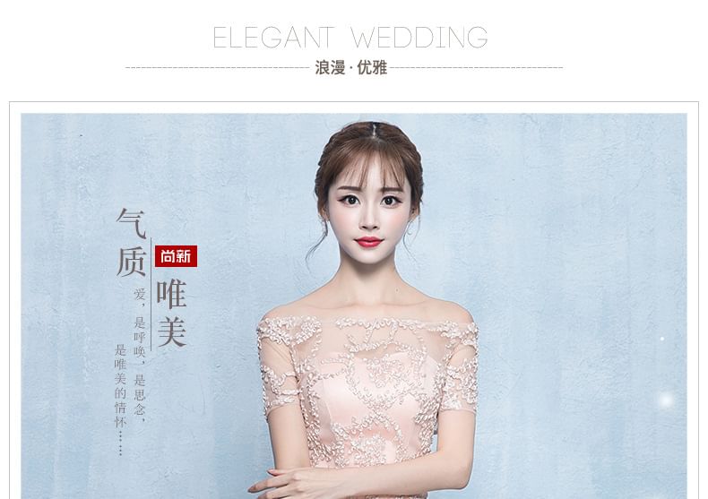 Short-Sleeve Off-Shoulder Embroidered Mesh A-Line Evening Gown / Midi Evening Dress