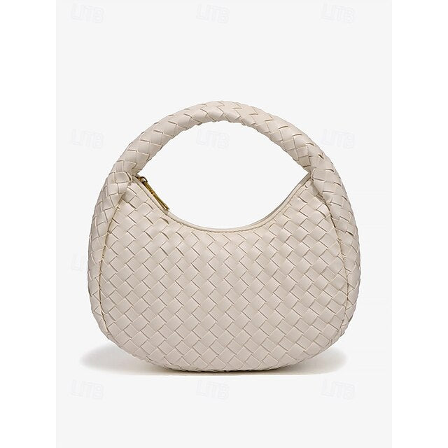 Gender: Women's, Type: Wristlet, Half round bag, Material: PU Leather, Pattern: Woven, Solid Color, Occasion: Casual Daily, Daily, Party, Width (cm): 12, Height (cm): 28, Length (cm): 28, Function: Lightweight, Large Capacity, Category: Handbag,