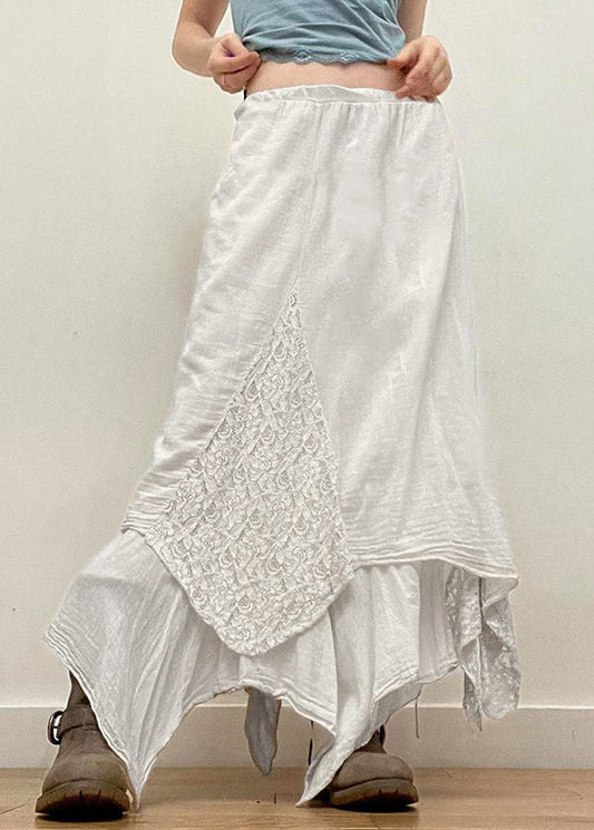 Bohemian White Asymmetrical Lace Patchwork Skirts Summer QC034
