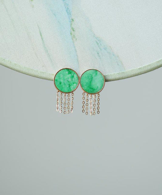 Loose Green Sterling Silver Overgild Jade Tassel Stud Earrings QU042
