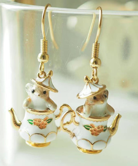 Original White Sterling Silver Overgild Teacup Squirrel Drop Earrings QU037