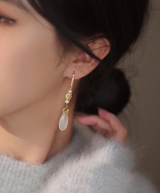 Chic White Sterling Silver Overgild Jade Butterfly Drop Earrings QU032