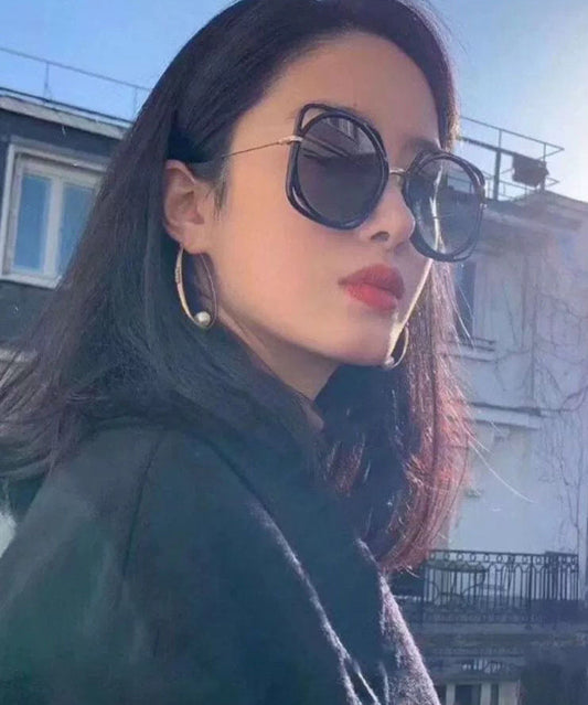 Oversize Gold Copper Overgild Elliptical Pearl Letter Hoop Earrings QU043