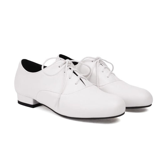Shoes Plain Faux Heel Chunky Leather Lace-Up
