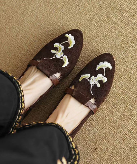 Beautiful Splicing Penny Loafers Brown Suede Embroidered YC015