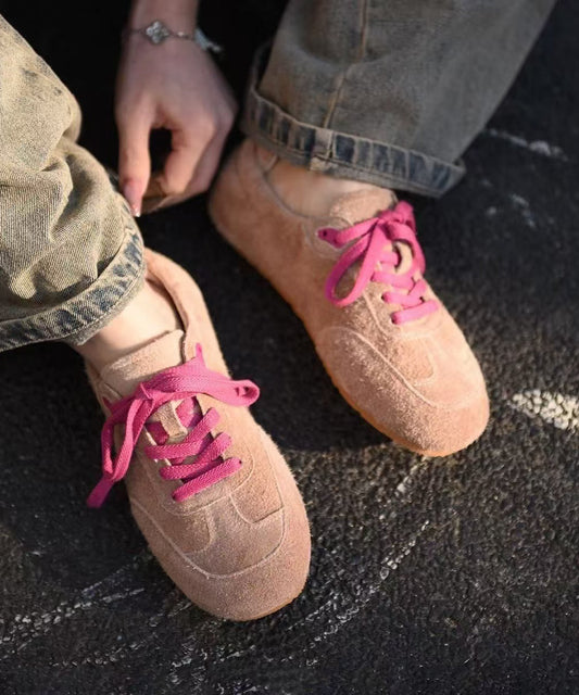 Women Casual Soft Comfy Blue Suede Flat Shoes Splicing Lace Up YC021