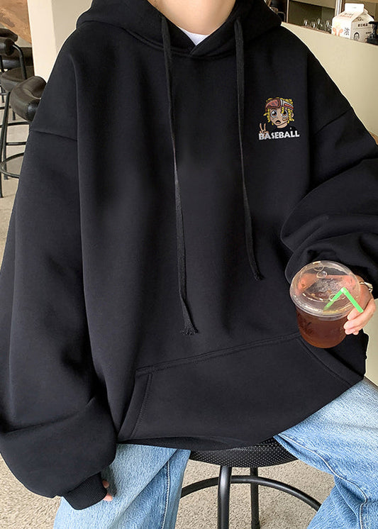 Loose Apricot Hooded Print Pockets Warm Fleece Mens Sweatshirts Winter RP051