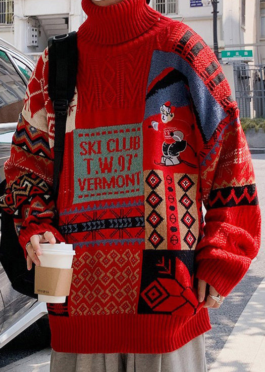Loose White Turtleneck Letter Patchwork Knit Men Sweater Winter RJ048