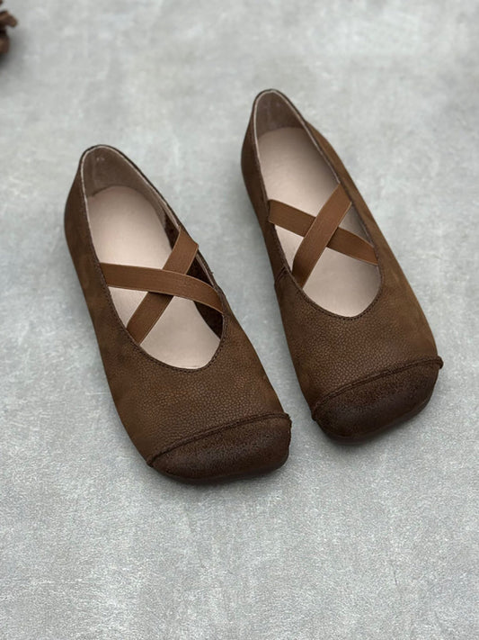 Flat Shoes Genuine Pure Color Women Spring Leather