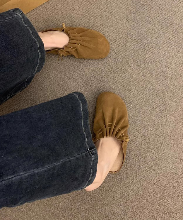 Chic Yellow Suede Wrinkled Splicing Slide Sandals