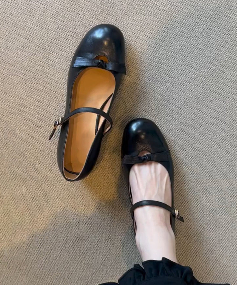 Chunky Sheepskin Strap Black Splicing Shoes Bow Buckle