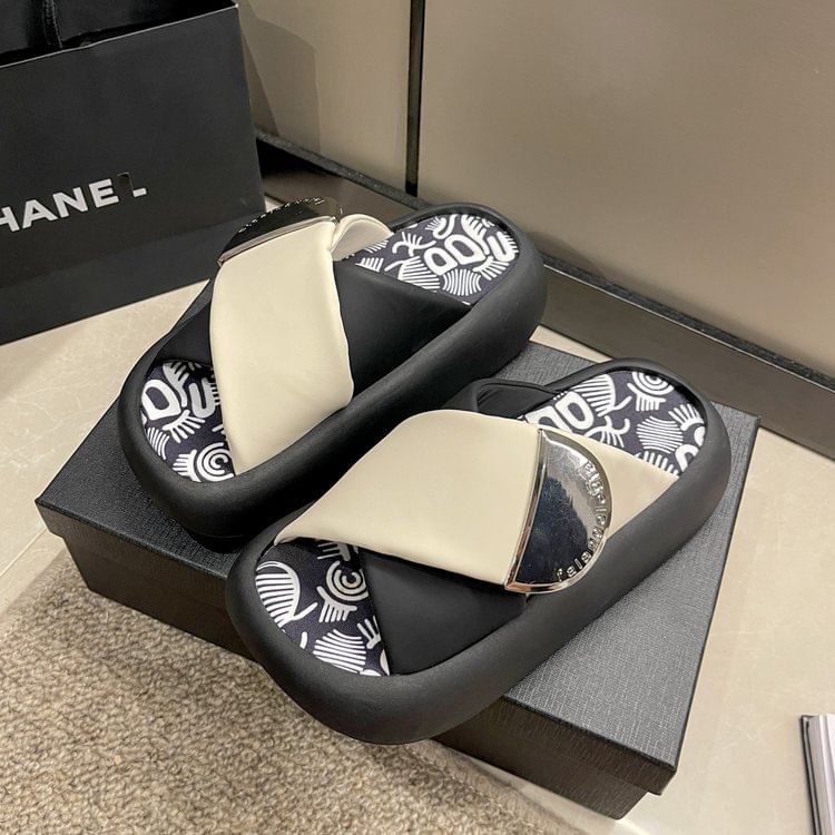 Platform Cross Strap Two Tone Faux Leather Sandals