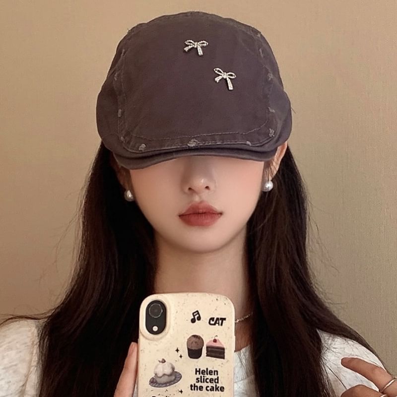 Plain Bow Distressed Flat Cap