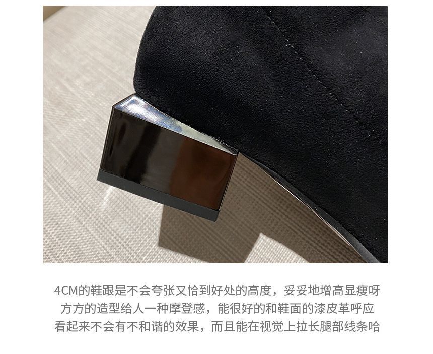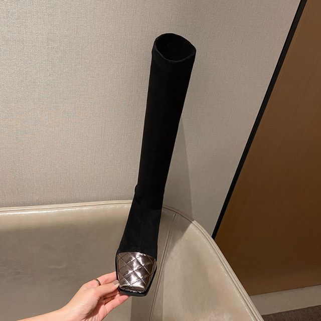 Heel Knee-High Boots Panel Quilted Block Square-Toe