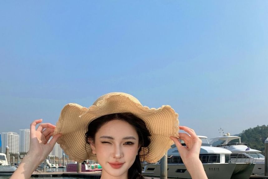 Spaghetti Strap Scoop Neck Plain Ruffle Trim Maxi A-Line Dress