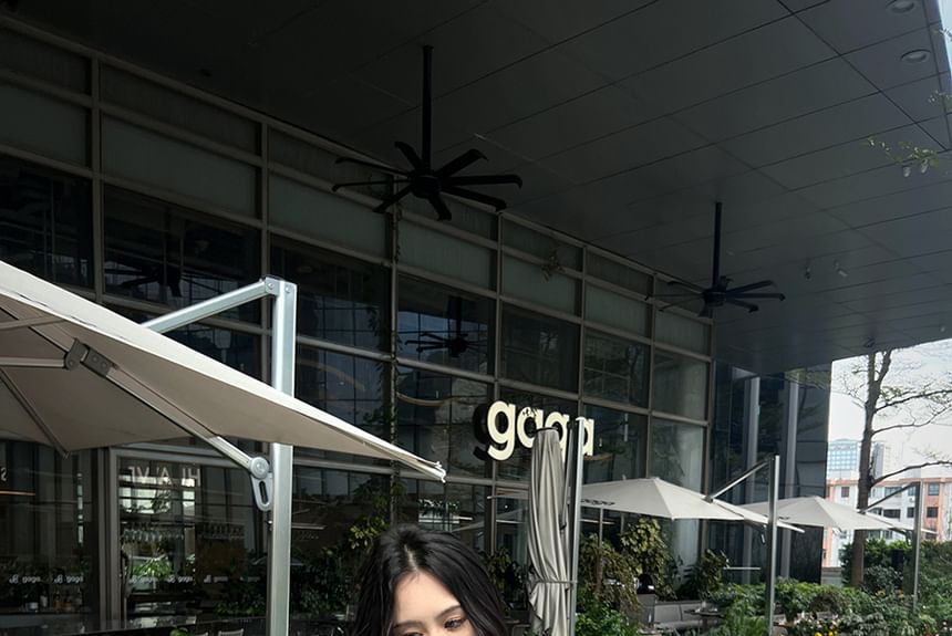Puff-Sleeve A-Line Rise Blouse Tie-Neck Set Plain Cami / High Skirt Top Mini