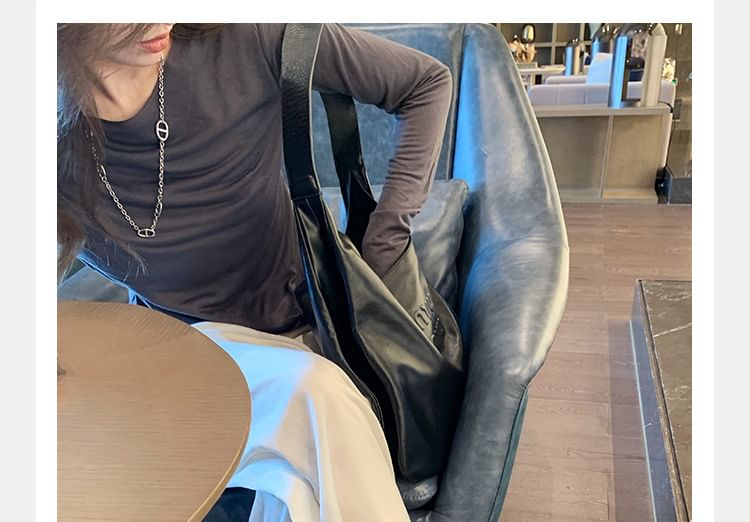 Ruched Loop Faux Leather Square Slide Toe Sandals