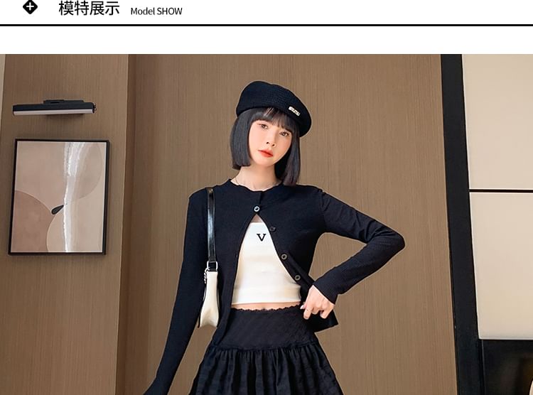 Skirt High Trim Waist Lace Plain A-Line Mini