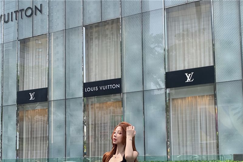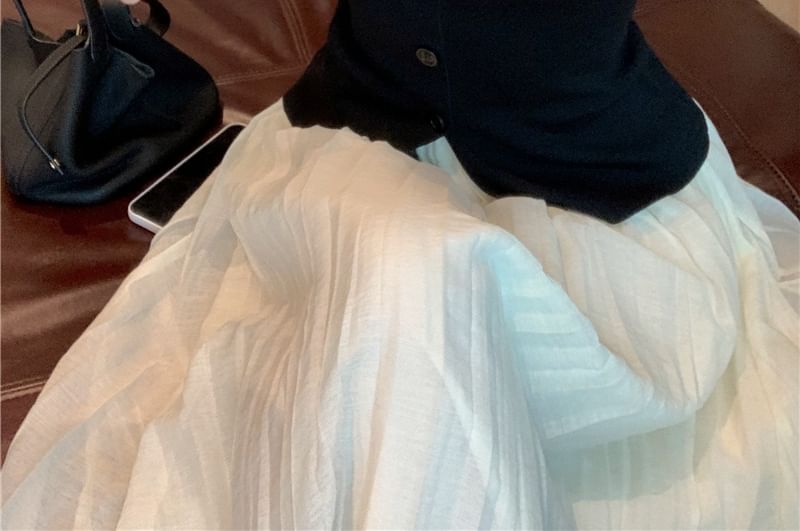 Square Neck Plain Button Tank Top / High Rise Plain Maxi A-Line Skirt
