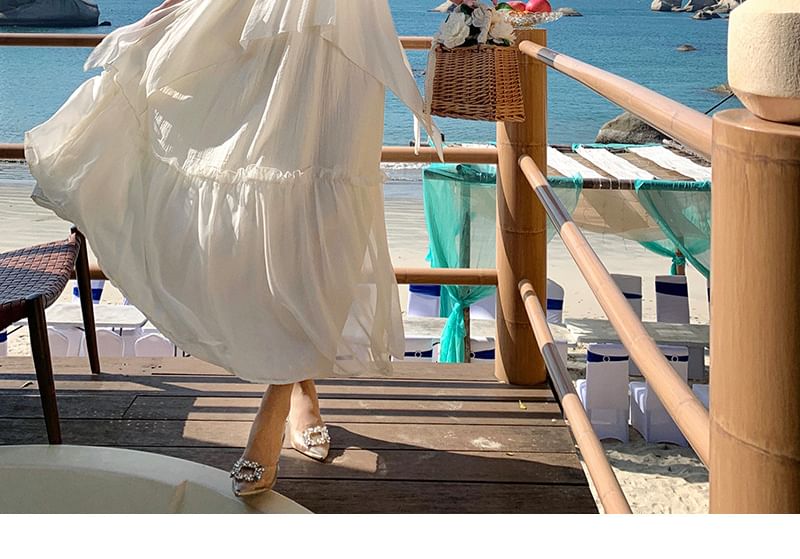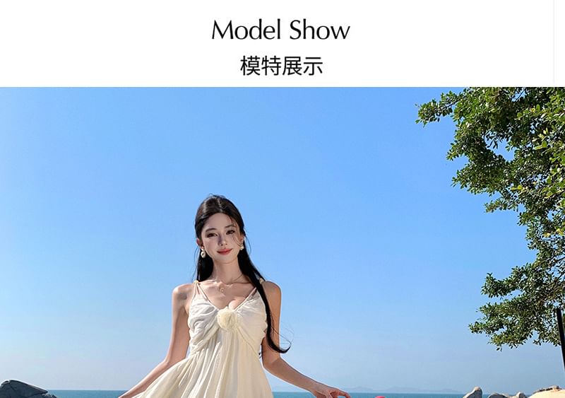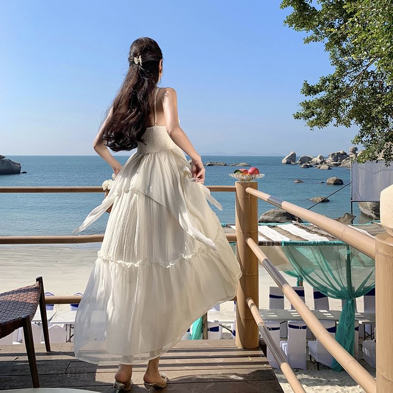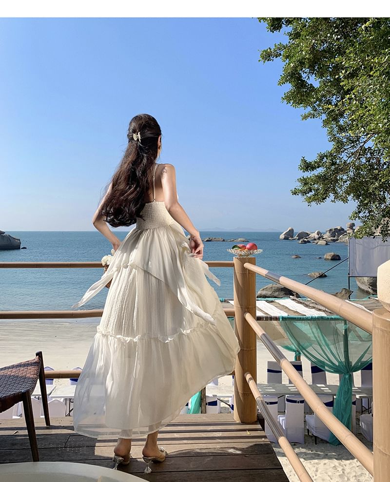 Trim Strap Dress A-Line Spaghetti Ruffle Plain V-Neck Maxi