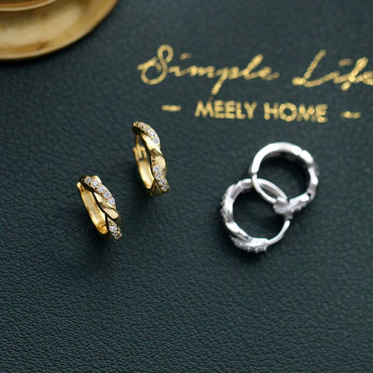 925 Sterling Silver Twisted Rhinestone Huggie Earring
