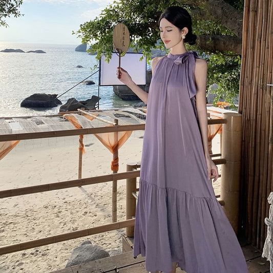 Crewneck Maxi Sleeveless Plain Dress A-Line