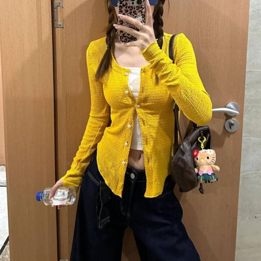 Crewneck Cable Knit Plain Button-Up Cardigan