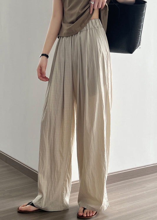 Apricot Pockets Cotton Wide Leg Pants Elastic Waist QE005