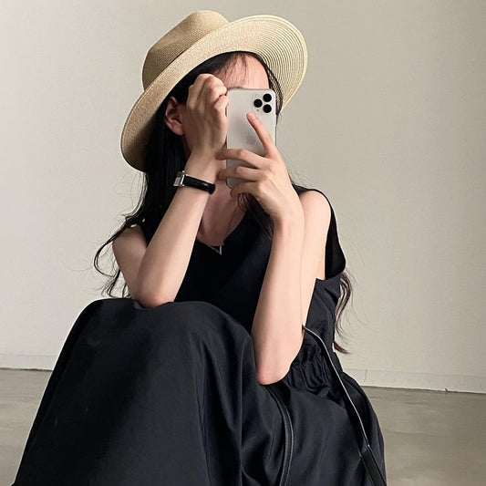 Spaghetti Strap Scoop Neck Plain Midi Pleated Dress