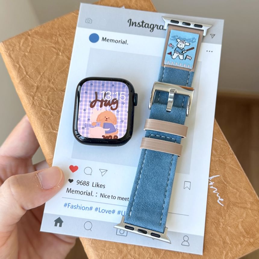 Apple Animal Genuine Watch Band Embroidered Leather