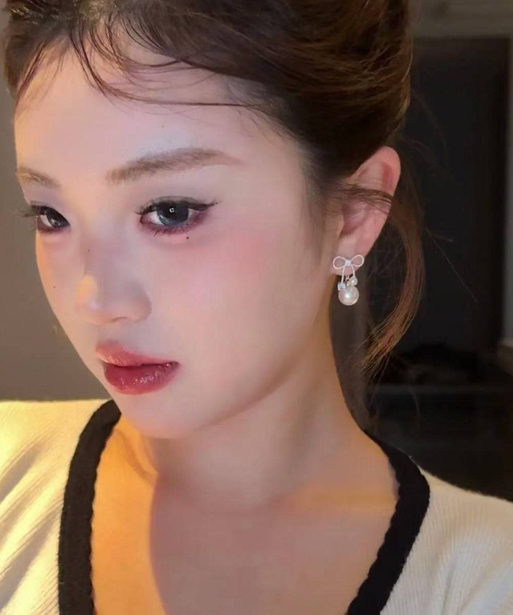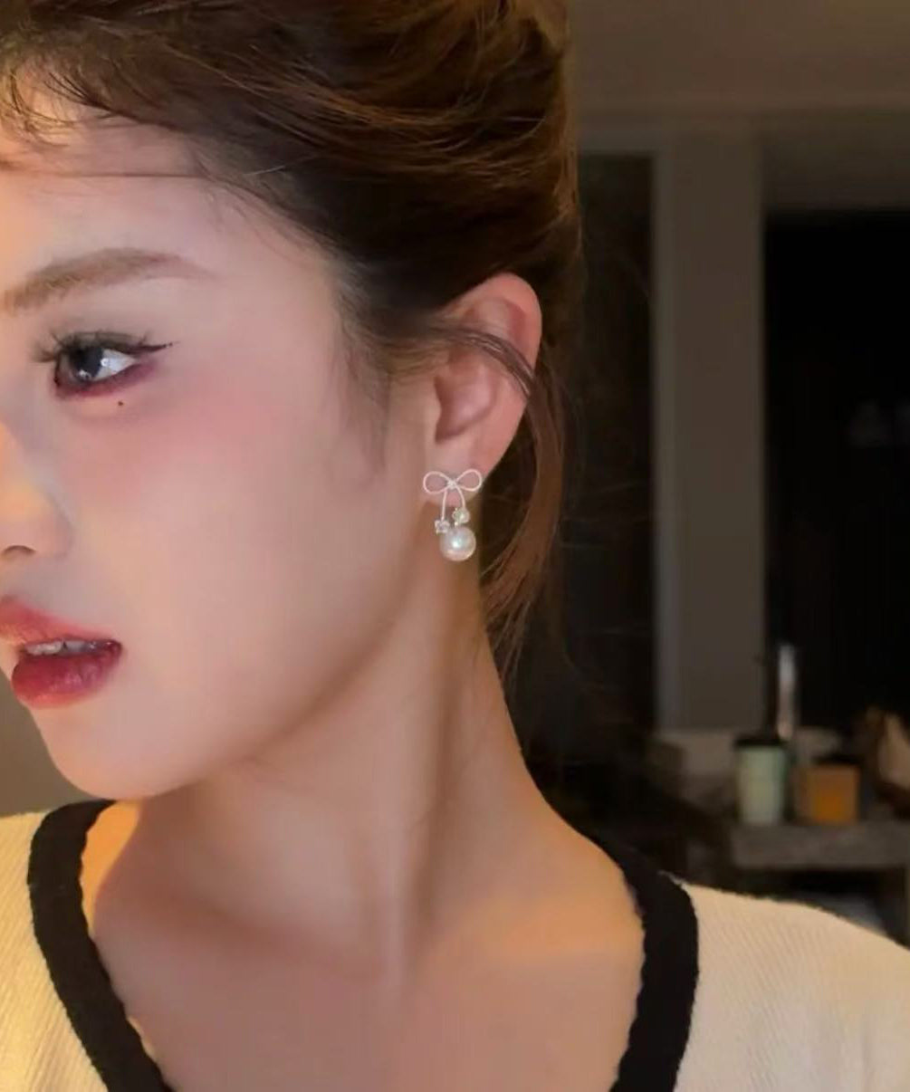 Beautiful White Sterling Silver Alloy Pearl Bow Drop Earrings