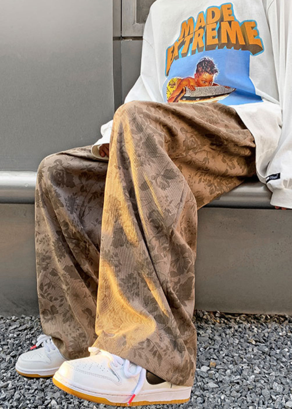 Stylish Khaki Print Elastic Waist Corduroy Mens Pants